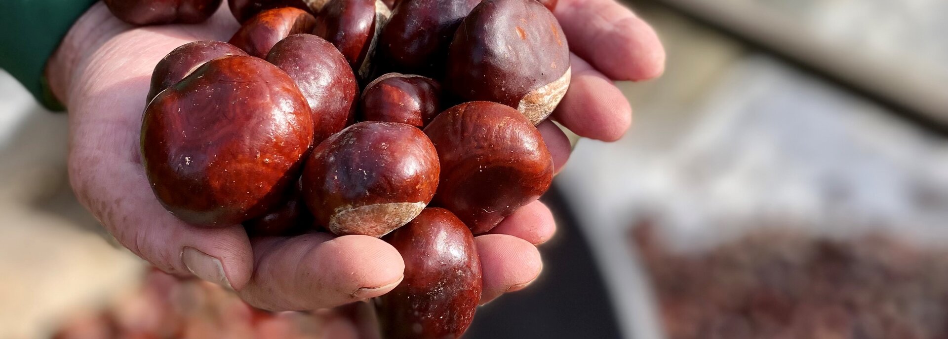 „Jedes Jahr besuchen uns die Kinder im Herbst und bringen uns Kastanien für das Damwild. Besonders Kindergartengruppen aus der Umgebung oder Großeltern mit ihren Enkeln kommen regelmäßig vorbei und bereichern damit die Vorräte der Tiere. Das ist inzwischen eine kleine Tradition geworden“, erzählt Rothert. Die gesammelten Kastanien werden im Gehege zwischengelagert und dienen dem Damwild in den kalten Wintermonaten als wertvolle Zusatznahrung neben dem täglichen Heu. „Manchmal gibt es zwischendurch ein paar Kastanien als Leckerbissen, da können die Tiere nur schwer widerstehen“, ergänzt Rothert schmunzelnd.