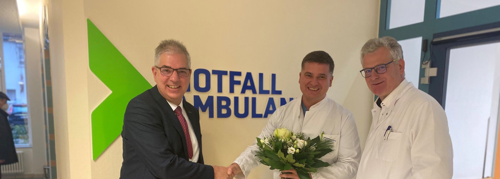 Personen im Bild v.l.n.r. (alle Eichsfeld Klinikum): Dr. Gregor Bett (Geschäftsführer), Dušan Trifunović (Chefarzt Notfallambulanz), Dr. Uwe Schotte (Ärztlicher Direktor)