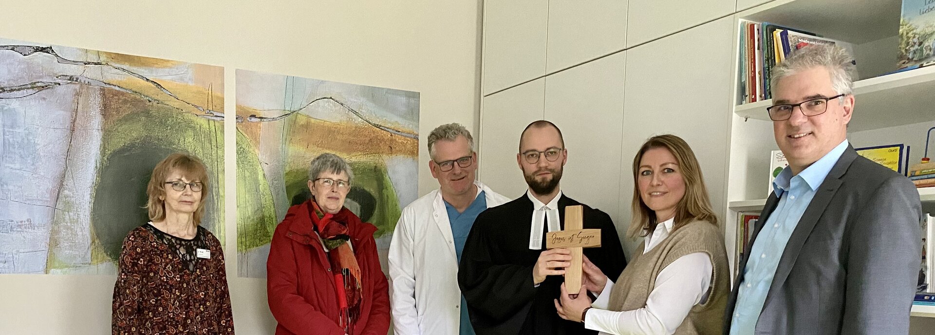 Mit einer feierlichen Andacht und einfühlsamen Worten von Pfarrer Andreas Paulsen wurde in der vergangenen Woche der neugestaltete Snoezelraum mit der neuen Begegnungsstätte unserer Emmaus Hospizdienste der EK Pflege in Reifenstein eingeweiht und gesegnet. Hier finden betroffene Erwachsene, Kinder- und Jugendliche mit lebensverkürzenden oder lebensbedrohlichen Erkrankungen, sowie deren An- und Zugehörige zukünftig einen besonders ausgestatteten Bereich mit entspannender Atmosphäre und gleichzeitig einen Ort der Begegnung, der Fürsorge, des Beistandes und der Beratung rund um die Themen Sterben, Tod und Trauer. Ebenso können hier die ehrenamtlichen Mitarbeitenden zum Austausch zusammenkommen. Das hier angebotene Therapiekonzept – das sogenannte Snoezel Konzept („snuffeln" - schnüffeln & "doezelen" – dösen) stammt aus den Niederlanden und wurde Ende der 70er Jahre entwickelt, um Menschen mit schweren Beeinträchtigungen sowie sensorischen Störungen, geeignete Erholungs- und Entspannungsmöglichkeiten zu anzubieten.