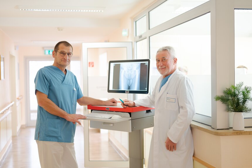 Von Hüft-OP bis Knieersatz – vor jedem operativen Eingriff erstellen wir eine detaillierte Planung, anhand derer wir das am besten geeignete Implantatsystem auswählen. Wir arbeiten ausschließlich mit bewährten Implantaten namhafter Hersteller und setzen auch individuell angefertigten Gelenkersatz ein. Sichere Techniken und eine lange Haltbarkeit bei guter Funktion sind dabei die wichtigsten Ziele des jeweiligen Eingriffs. Im Endoprothetikzentrum stehen Ihnen 3 Hauptoperateure zur Verfügung, die alle strengen Kriterien der fachlichen und praktischen Anforderungen an ein Endoprothetikzentrum erfüllen.
