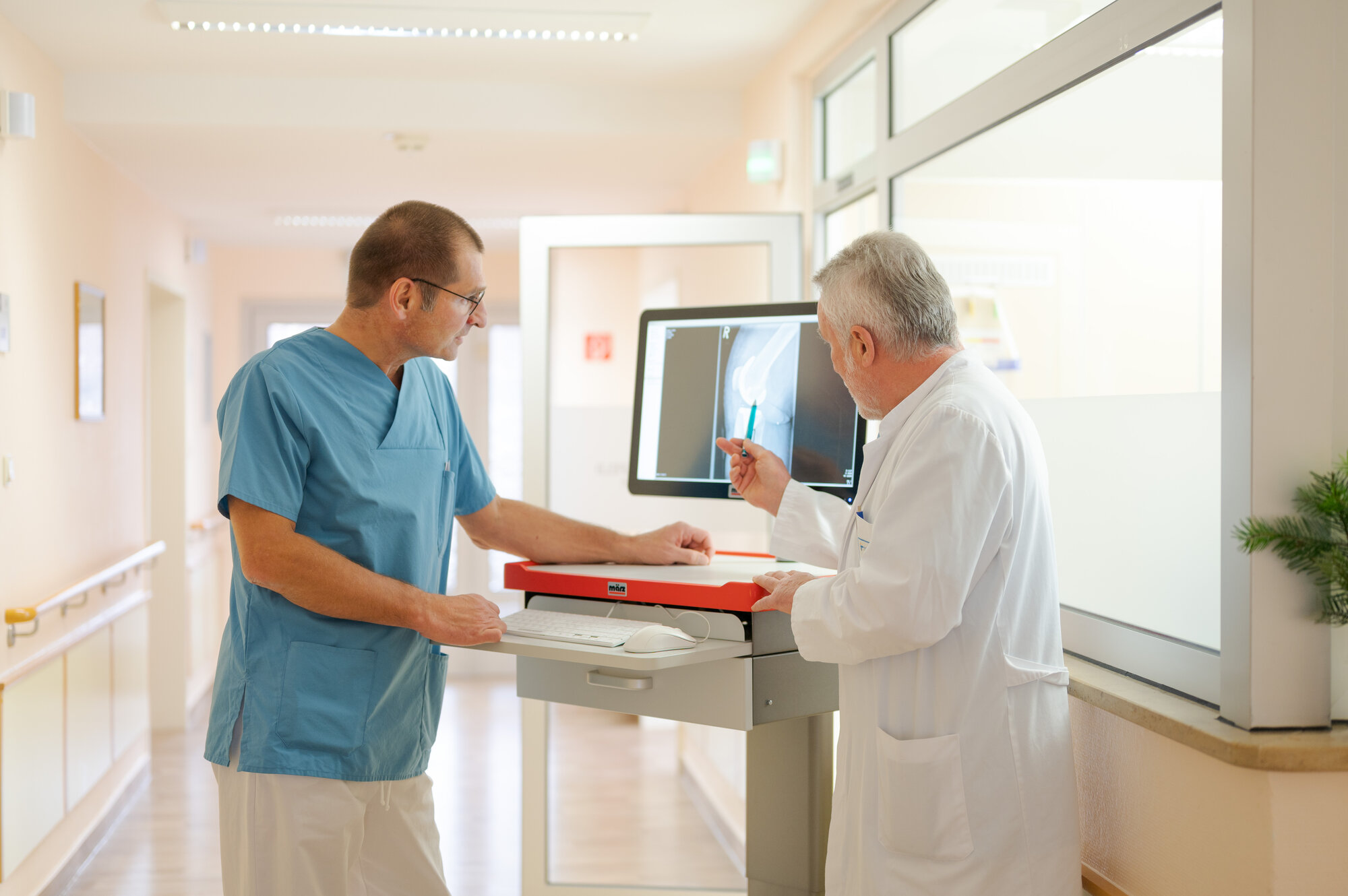 Jährlich setzen wir als zertifiziertes Endoprothetikzentrum etwa 350 Hüft- und Knieprothesen ein. Das sind viele Operationen, viele Entscheidungen und viele Menschen, deren Leben sich nach einer solchen Operation verändert und im besten Fall wieder stärker ins Positive wendet. Gerade deshalb legen wir großen Wert auf fallorientiertes Entscheiden und die Berücksichtigung Ihrer individuellen körperlichen Voraussetzungen und persönlichen Wünsche. Damit Entscheidungen nachhaltig und problembewusst getroffen werden können, stehen wir in engem Austausch mit den überweisenden Praxen und fachübergreifend mit medizinischen Kolleg*innen.