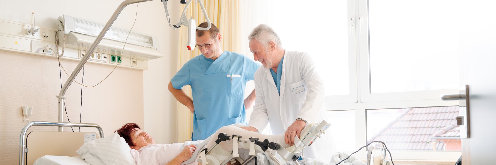Die Betreuung nach der Operation wird durch unser qualifiziertes Personal aus dem Bereich des ärztlichen Dienstes, der Krankenpflege, der Physiotherapie und des Sozialdienstes sowie der Orthopädietechnik gewährleistet. Dies soll Ihnen eine schnelle, wirksame und nachhaltige Rehabilitation ermöglichen, so dass die Anschlussheilbehandlung in der Praxis um bestmöglichen Erfolg führen kann.