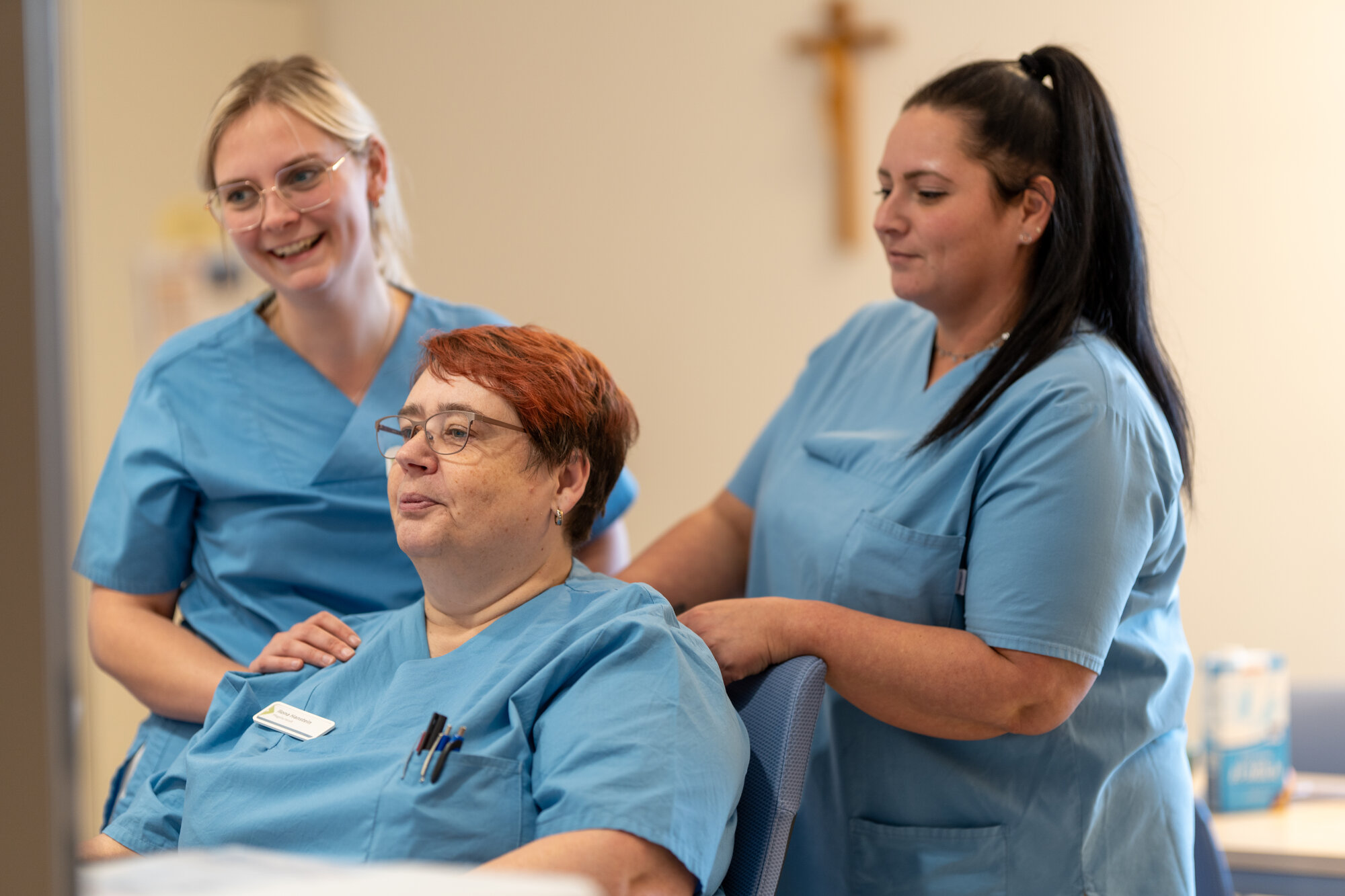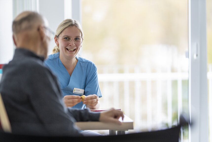 Betreuung umfasst bei uns auch das persönliche Gespräch, gemeinsame Zeit bei einem guten Buch oder einfach nur in der Nähe zu sein. Dabei arbeiten wir eng mit unseren ehrenamtlichen Hospizbegleiter*innen zusammen. Unsere Patient*innen nehmen dieses Angebot dankbar an – man arbeitet Hand in Hand.